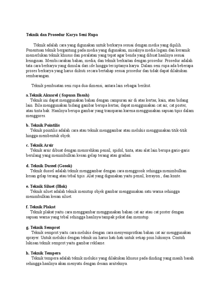 Teknik Dan Prosedur Karya Seni Rupa Docx